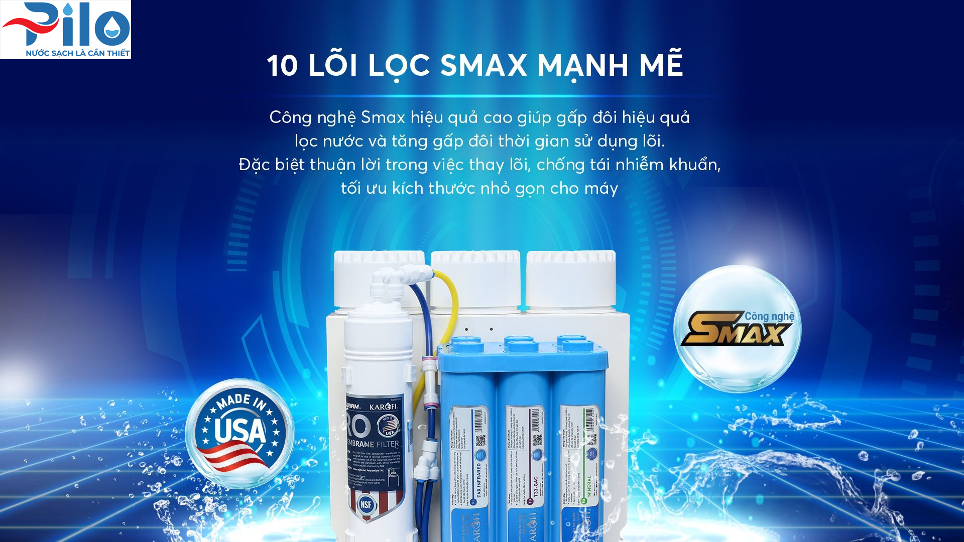 – Các lõi lọc chức năng sử dụng công nghệ lọc nước Smax Nano.