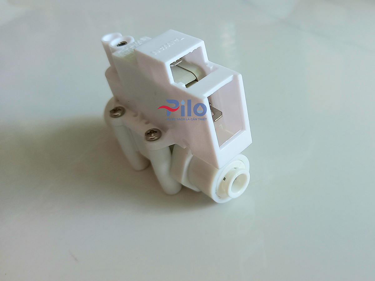 Cấu tạo: được làm bằng nhựa cao cấp cách điện với 2 chiều nước vào và chiều nước ra. Van sử dụng nguồn điện 24V, tự đóng và ngắt theo áp suất của nước.